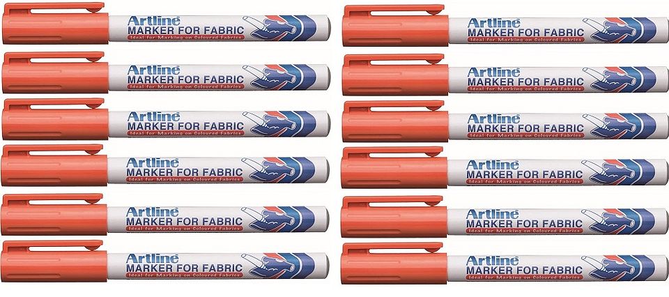 • 12 Pack of Artline Marker Pens for Fabrics Pastel Orange