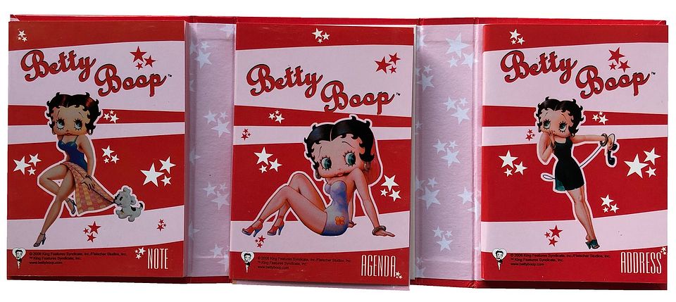 This Betty Boop tri fold hard back notebook contains 3 seperate