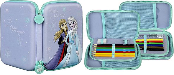 Disney Frozen II Twin Compartment 3D Filled Pencil Case with 16 Items