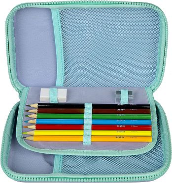 - In the filled 3D pencil case, all pens are included and quickly at hand. The two practical mesh pockets hold flash cards or small notes