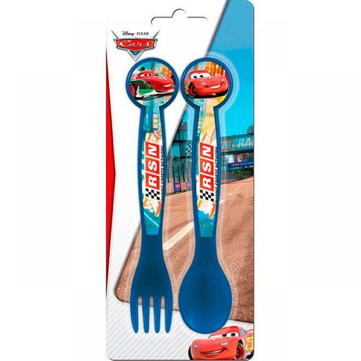 Disney Pixar Cars Plastic Spoon and Fork Cutlery Set Blue