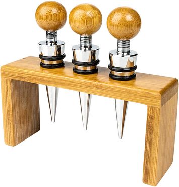 • Grunwerg Classic Design 3 Piece Deluxe Bamboo Wine Stopper Set