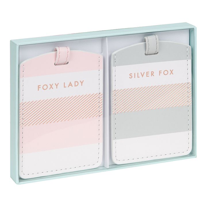 His and Hers 'Silver Fox' and 'Foxy Lady' Luggage Tags Blue and Pink
