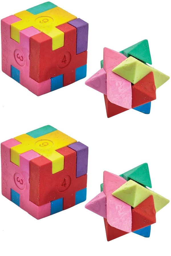 Pack of 4 Mini Puzzle Colourful Cube and Star Erasers